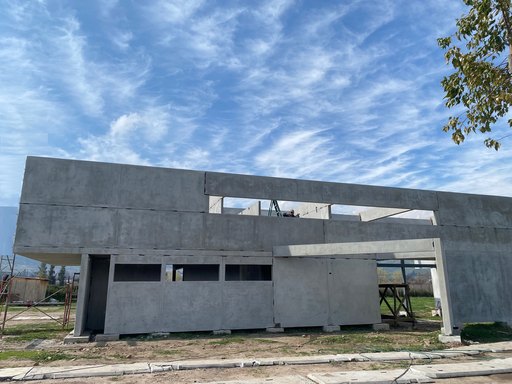 Proyecto industrializado realizado con el sistema de paneles 2D FACORO. El proyecto abarca 230 m² de construcción en hormigón armado, con fachadas de acabado expuesto e imponentes voladizos. Gracias al uso de la metodología BIM, se integraron de manera eficiente las diferentes especialidades, incluyendo instalaciones eléctricas, sanitarias, agua potable, gas, calefacción por radiadores, entre otras.